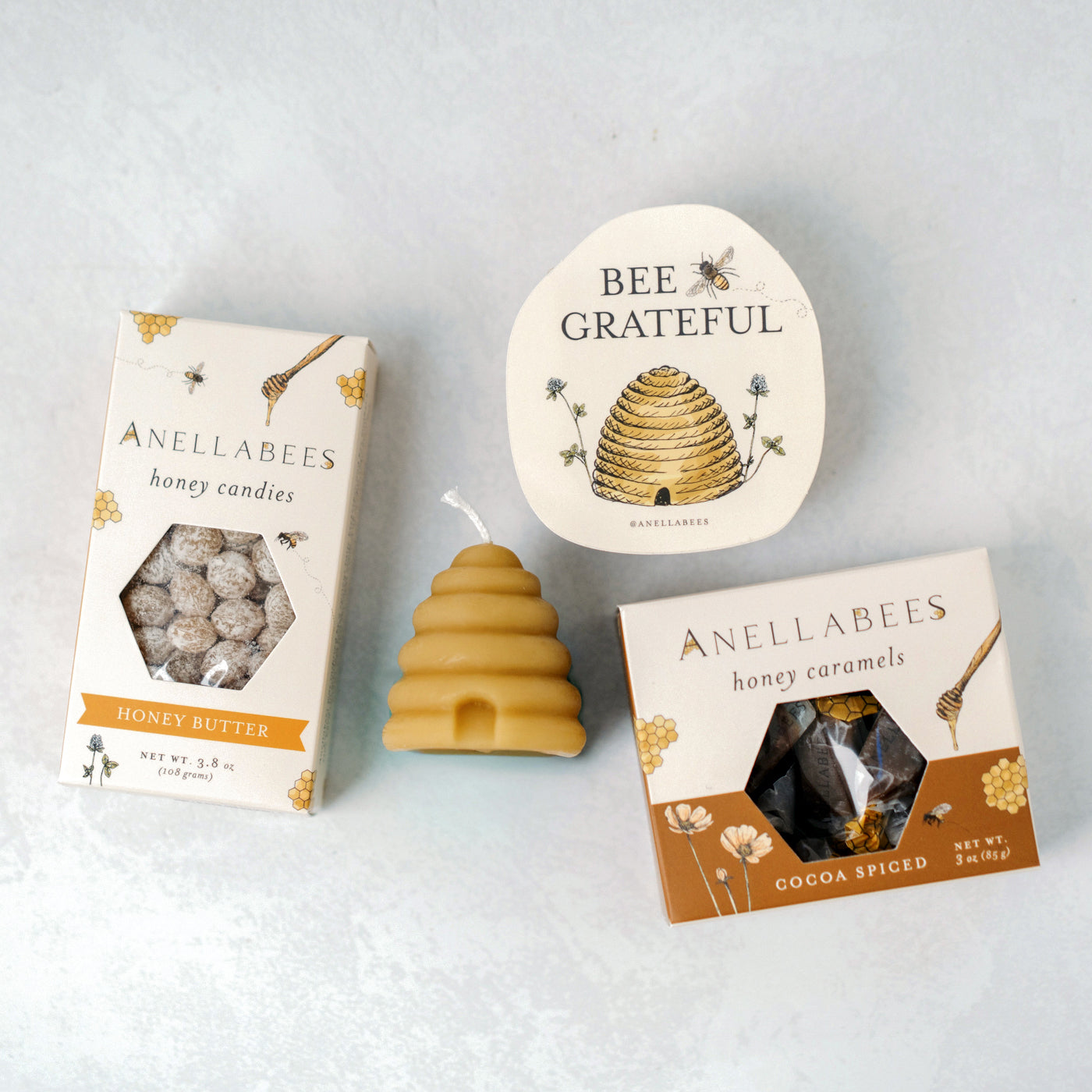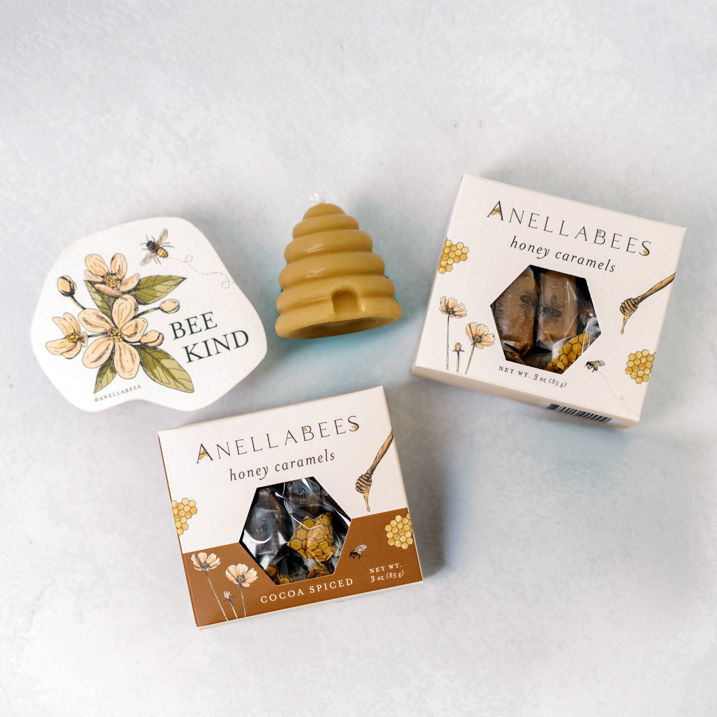 The more Anellabees, the better! We combined all of our sweet treats in a single Anellabees Honey Candy Sampler set, including our honey caramel and our four classic honey candies: Cocoa butter, lemon butter, cinnamon butter and our classic honey butter. Keep the sweetness to yourself or share with family and friends, and bee sure to let us know if you pick a favorite!